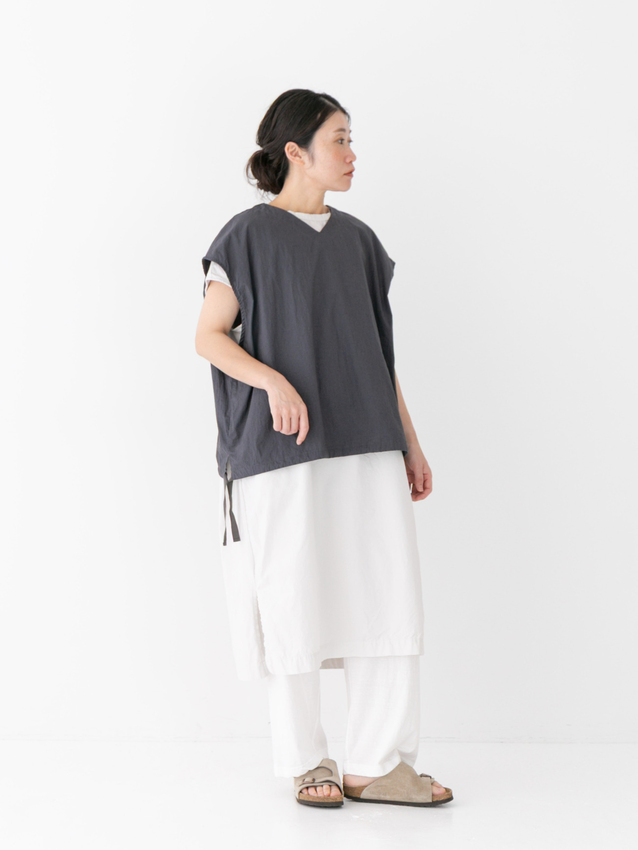 Vネック裾ヒモ2wayオーバーベスト