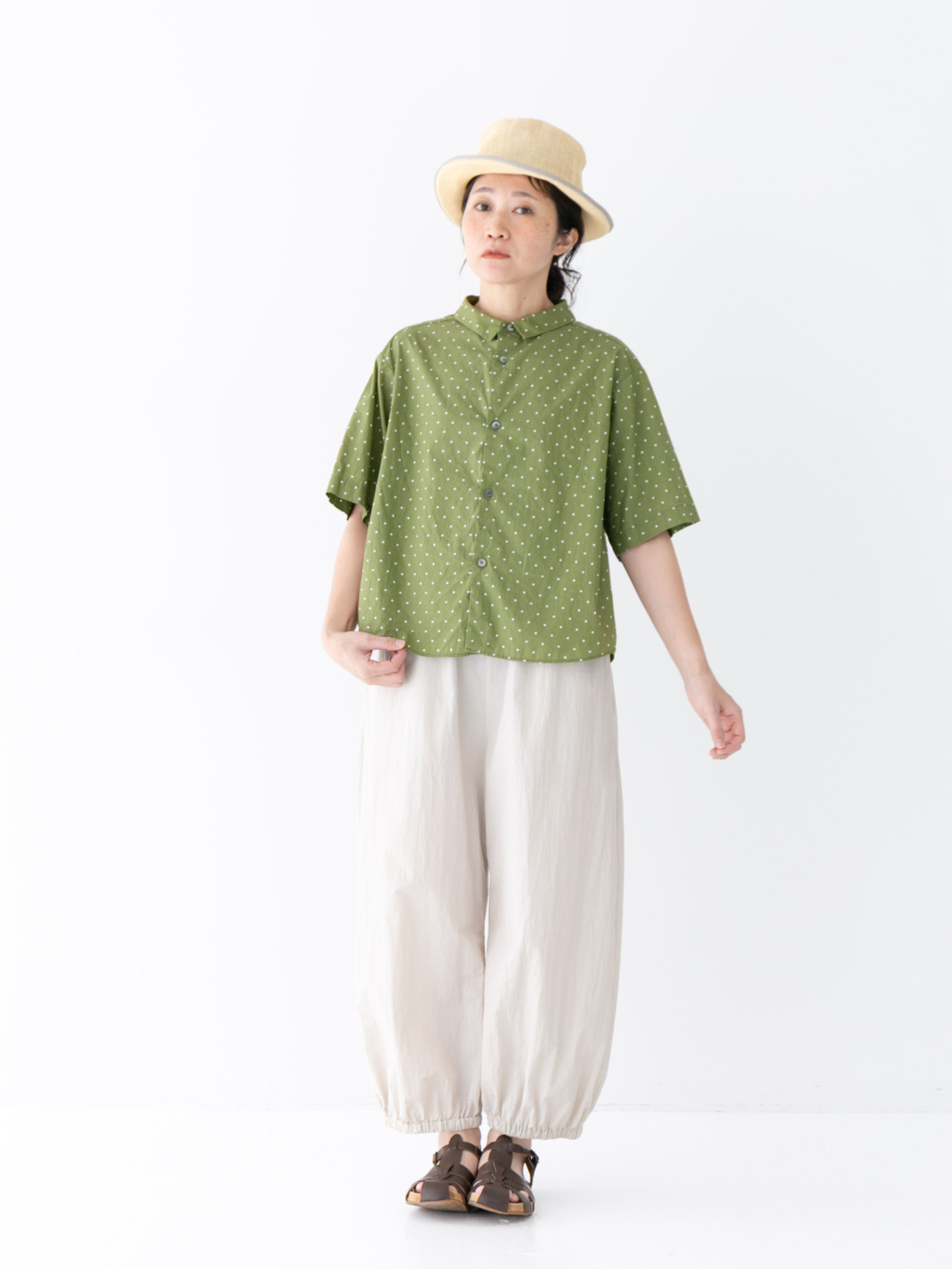 70/1高密度ローンドットプリント5分袖ショートシャツ